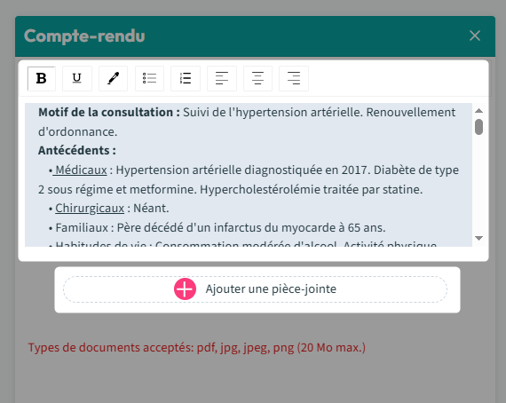 Vous souhaitez rédiger un compte-rendu de consultation, une lettre de liaison médicale ou un compte rendu opératoire… et le partager avec un patient pour faciliter son parcours de santé.