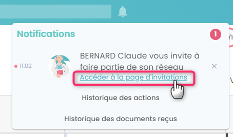 2. Accéder à la notification d'invitation puis cliquez sur "Accéder à la page d'invitation" :