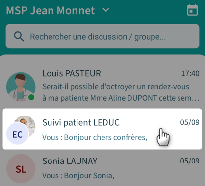 1. Cliquez sur le groupe de conversation dans lequel vous voulez ajouter un nouveau membre :