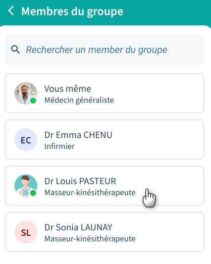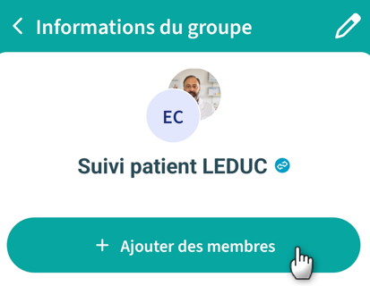 Lorsque vous créez un groupe de conversation depuis l'application Maiia Connect, vous pouvez ajouter de nouveaux participants à rejoindre le groupe de conversation ou supprimer des participants de ce groupe.