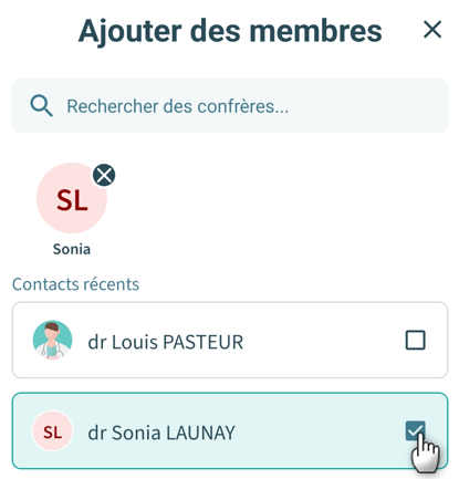 4. Sélectionnez le nom du nouveau participant :