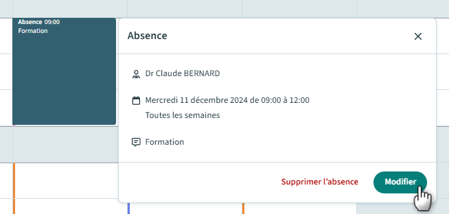 Modifier une absence
