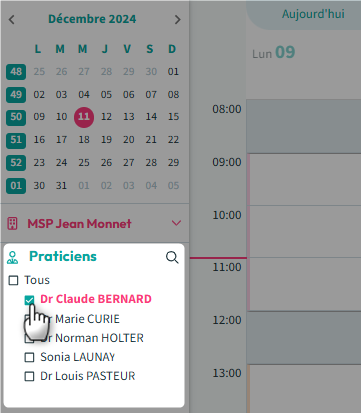 1. Sélectionnez l’agenda du praticien concerné.