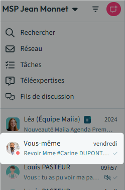 5. Votre statut apparait aux autres utilisateurs de la messagerie Maiia Connect :