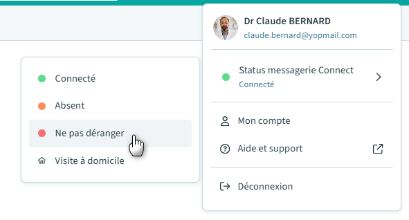Pour définir un statut pour votre messagerie Maiia Connect depuis votre ordinateur :