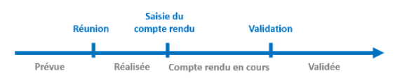 Les réunions pluriprofessionnelles connaissent 4 statuts en fonction de leur état d'avancement (en gris sur le schéma ci-dessous).