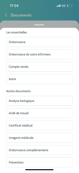 Depuis l'application Maiia Pro, il est possible de prendre en photo des documents en indiquant le type de document.