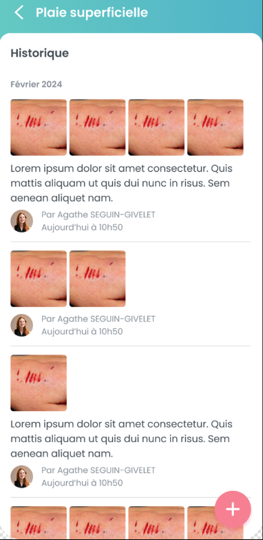 - Sélectionner une plaie existante pour y ajouter une nouvelle photo.
