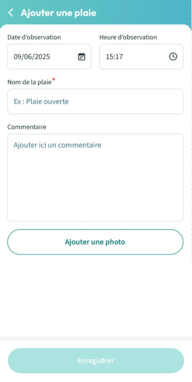 - ou cliquez sur « Ajouter une plaie » pour en créer une nouvelle.