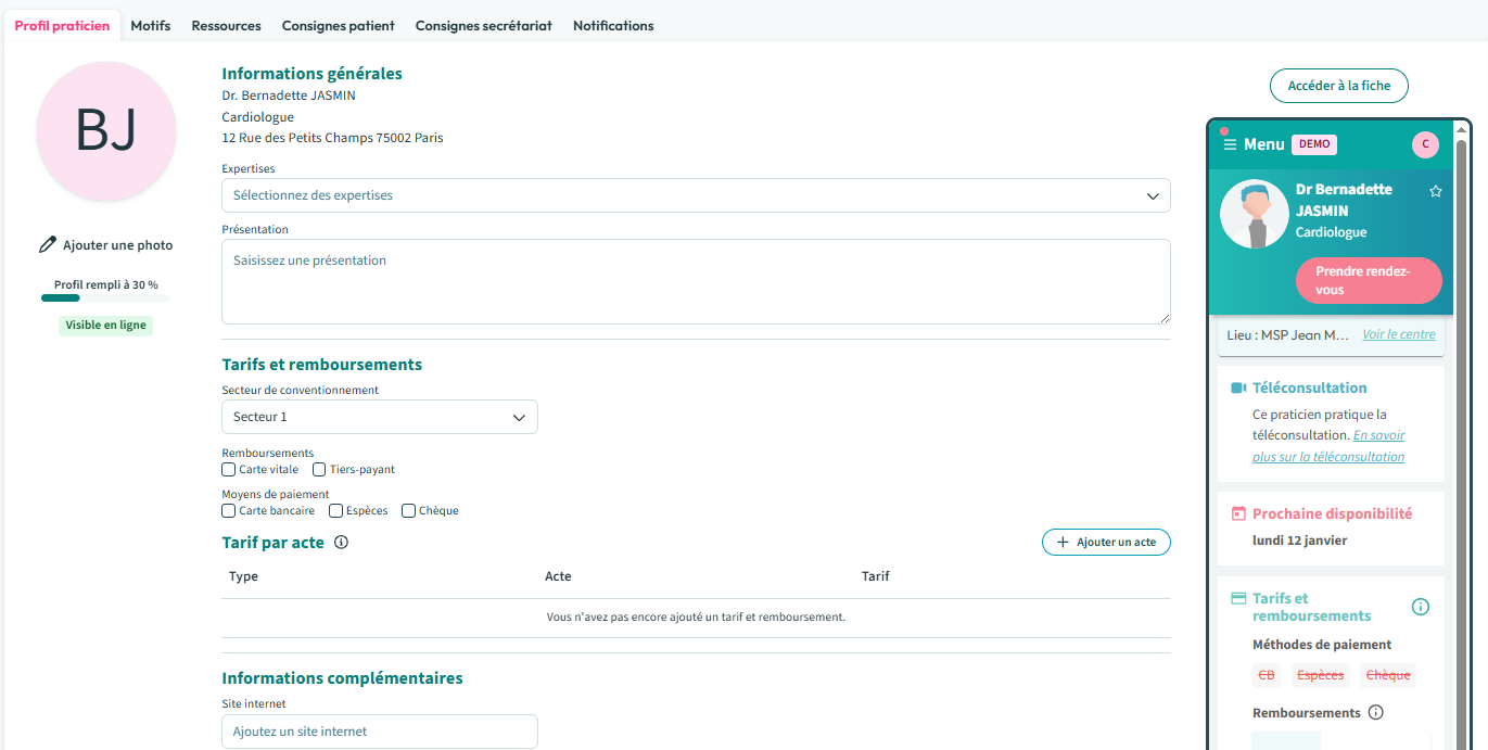 Pour approfondir la personnalisation de votre profil et maximiser votre impact auprès des patients, nous vous invitons à consulter les articles d'aide suivants :