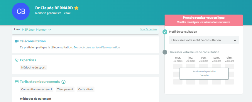 1. Depuis son compte patient Maiia, le patient accède à la fiche du praticien
