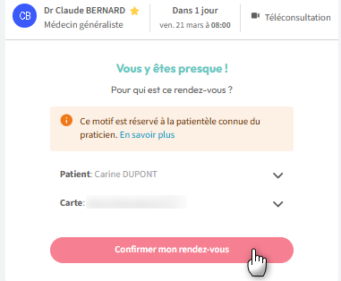 le patient doit avoir un compte patient Maiia et une carte bancaire valide à portée de main.