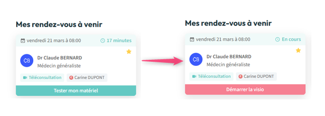 1. Le patient clique sur le bouton "Démarrer la visio".