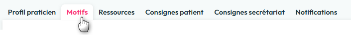 L'ordre dans lequel vous mettez vos motifs de consultation sera celui que vous retrouverez dans les fenêtres de prise de RDV