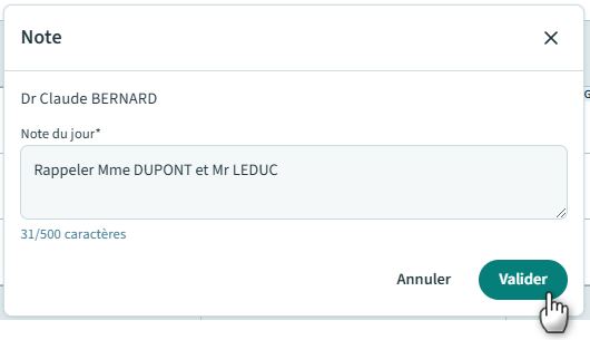 3. Apportez les modifications souhaitées à la note puis cliquez sur "Valider" :