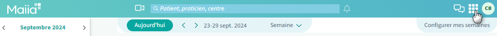 1. Dans l'agenda du praticien remplacé, cliquer en haut à droite sur Configurer mes semaines.