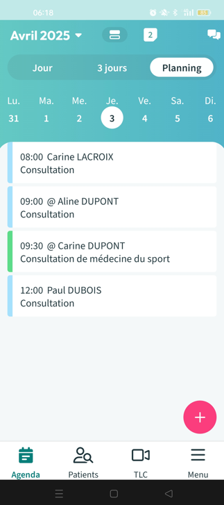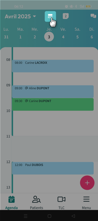 3. La vue planning vous permet de regrouper tous vos rendez-vous de la journée :