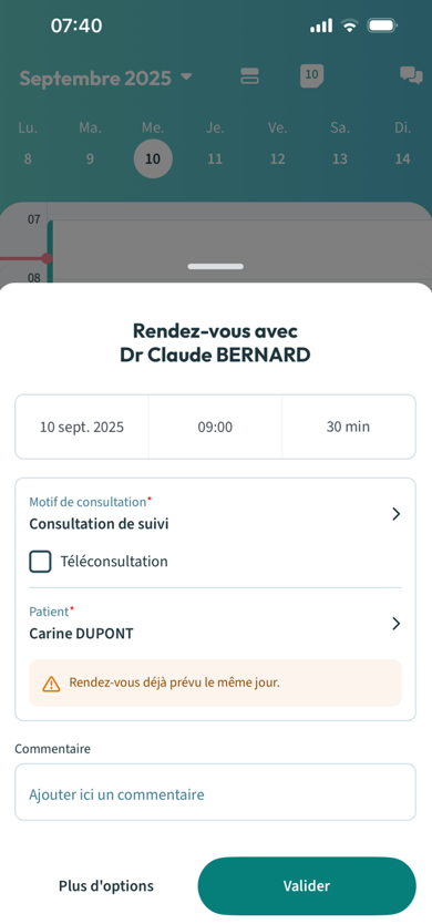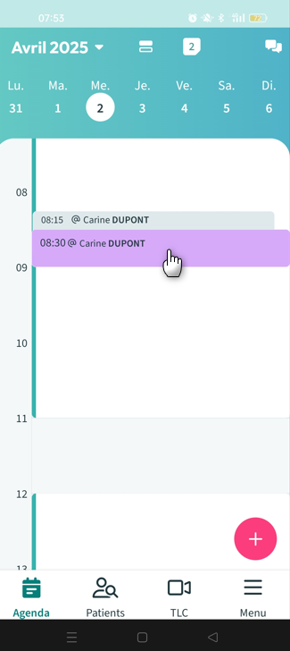 Vous avez validé un rendez-vous et vous souhaitez modifier sa date, son motif ou même le nom du patient ou le déplacer dans la journée.