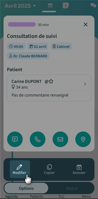 Modifier un rendez-vous avec plus d'options