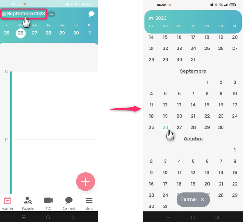 ▪ Changer de centre ou d'agenda (si vous en avez plusieurs),
