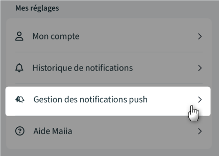 2. Dans "Mes réglages", cliquez sur "Gestion des notifications push" :