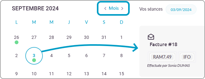 💬 Une séance est facturée (identifiable avec le disque vert 🟢) n'est plus modifiable.