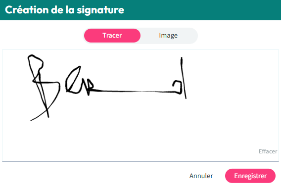 - Vous avez la possibilité de tracer votre signature, puis l'enregistrer :