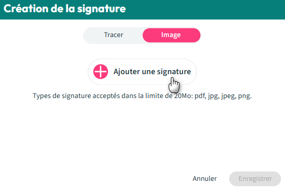 - Ou de télécharger votre signature depuis votre ordinateur :