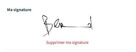NB: pour modifier la signature il vous suffit de cliquer sur "supprimer ma signature" et répéter les mêmes étapes .