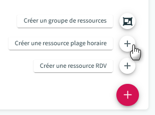 4. Posez le curseur sur le "+" en bas à droite, puis cliquez sur "Créer une ressource plage horaire" :