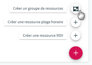 1. Posez le curseur sur le "+" en bas à droite, puis cliquez sur "Créer un groupe de ressources" :