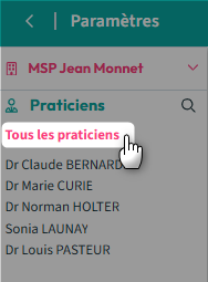3. Cliquez sur "Tous les praticiens" car le paramétrage des ressources plages horaires n'est possible qu'au niveau d'un centre :