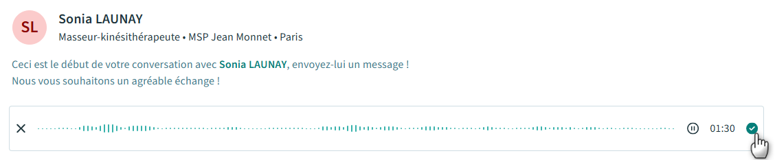 2. Enregistrez votre message vocal, puis cliquez sur l'icone à droite pour terminer :