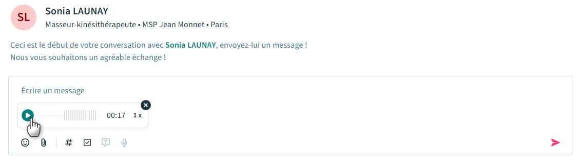 4. Pour envoyer votre message vocal, cliquez sur l'icone rouge à droite :